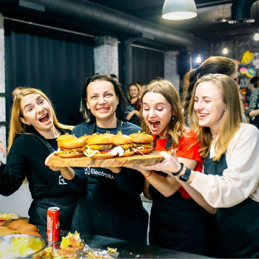 У кулінарному форматі кожен з учасників готуватиме їжу, а якщо Ви вибираєте інші види вечірок – ми організуємо найкращий фуршет з елементами шоу та гастро-захвату!
